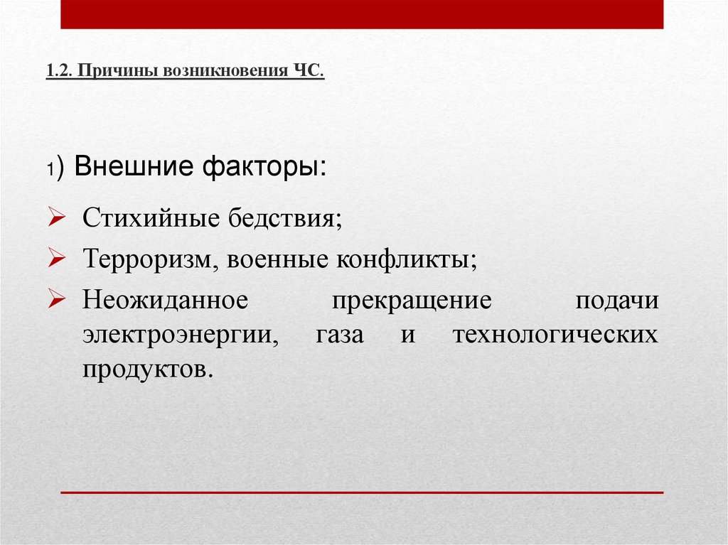 1.2. Причины возникновения ЧС.1) Внешние факторы: