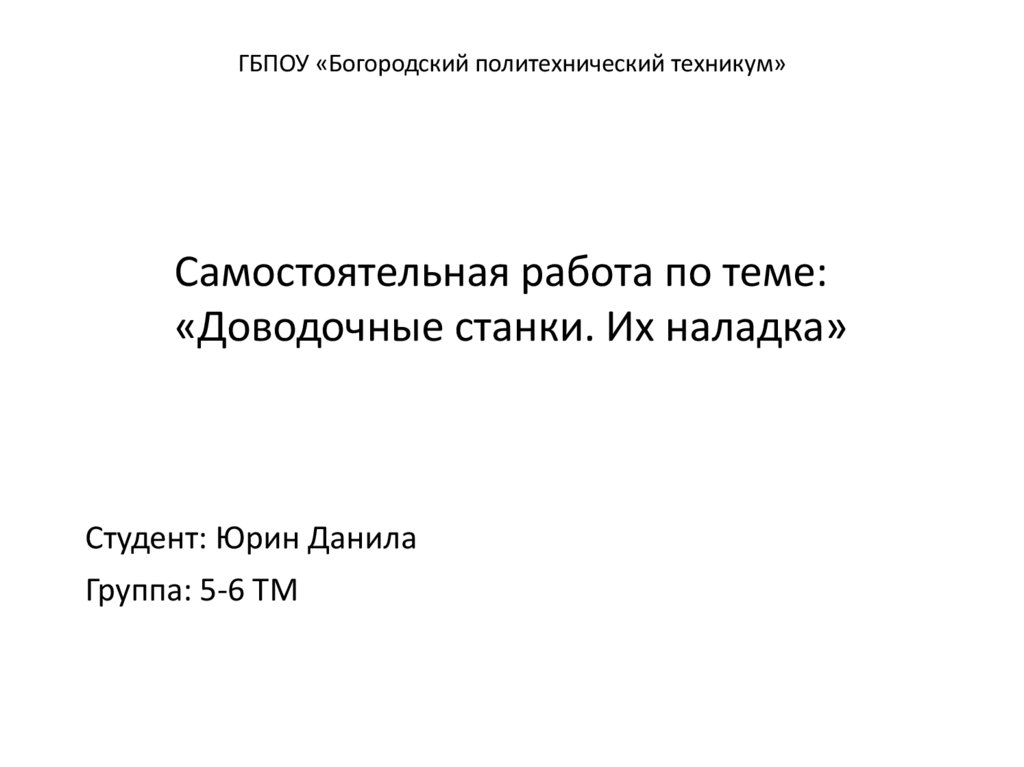 Самостоятельная работа по теме:«Доводочные станки. Их наладка»