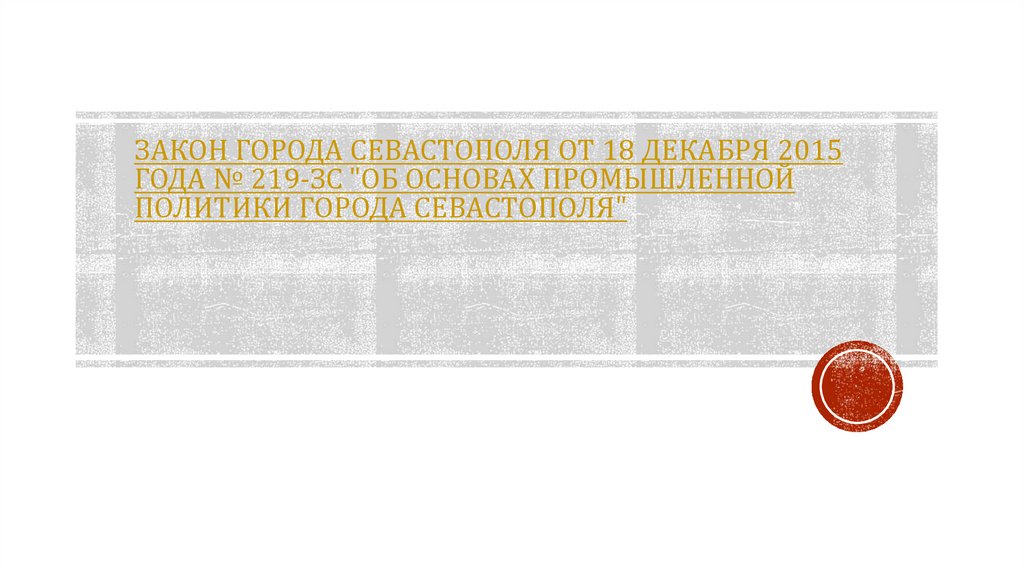 ЗАКОН ГОРОДА СЕВАСТОПОЛЯ ОТ 18 ДЕКАБРЯ 2015ГОДА № 219-ЗС "ОБ ОСНОВАХ ПРОМЫШЛЕННОЙ