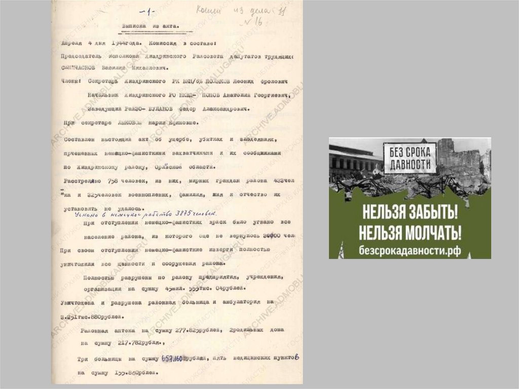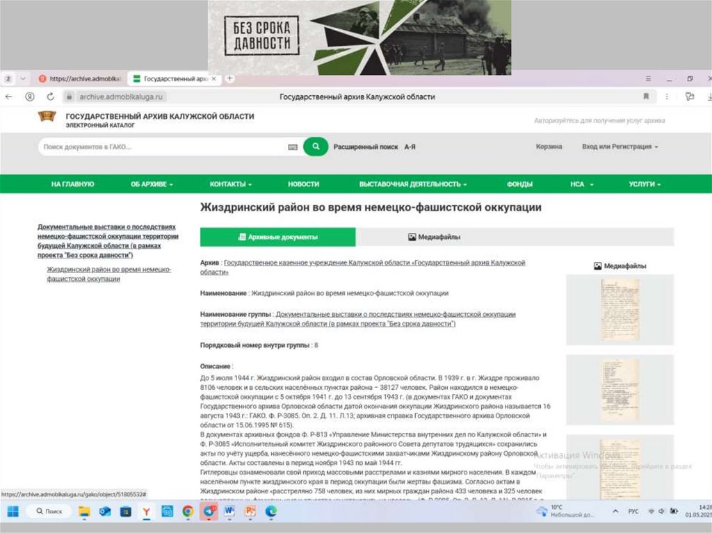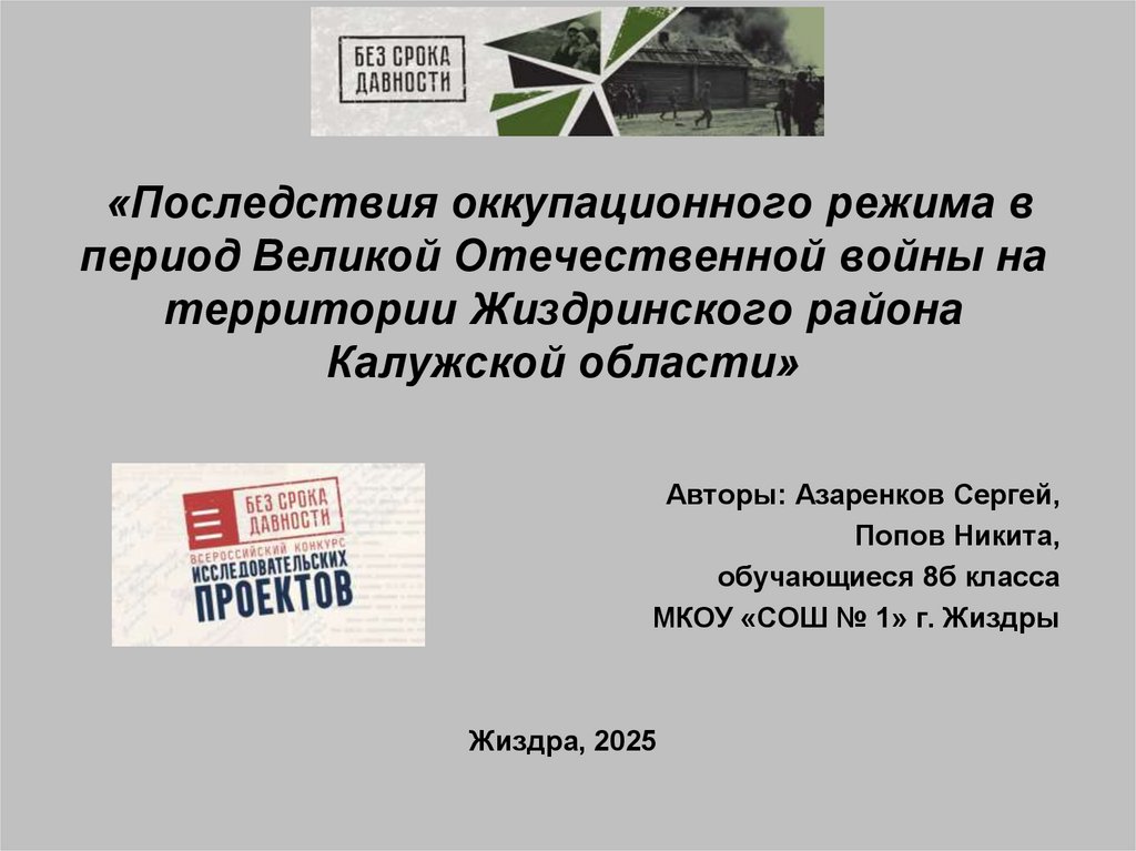 Последствия оккупационного режима в период Великой Отечественной войны на территории Жиздринского района Калужской области