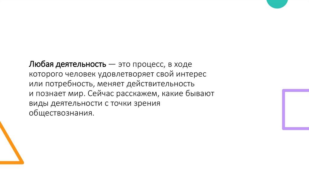 Любая деятельность — это процесс, в ходекоторого человек удовлетворяет свой интерес