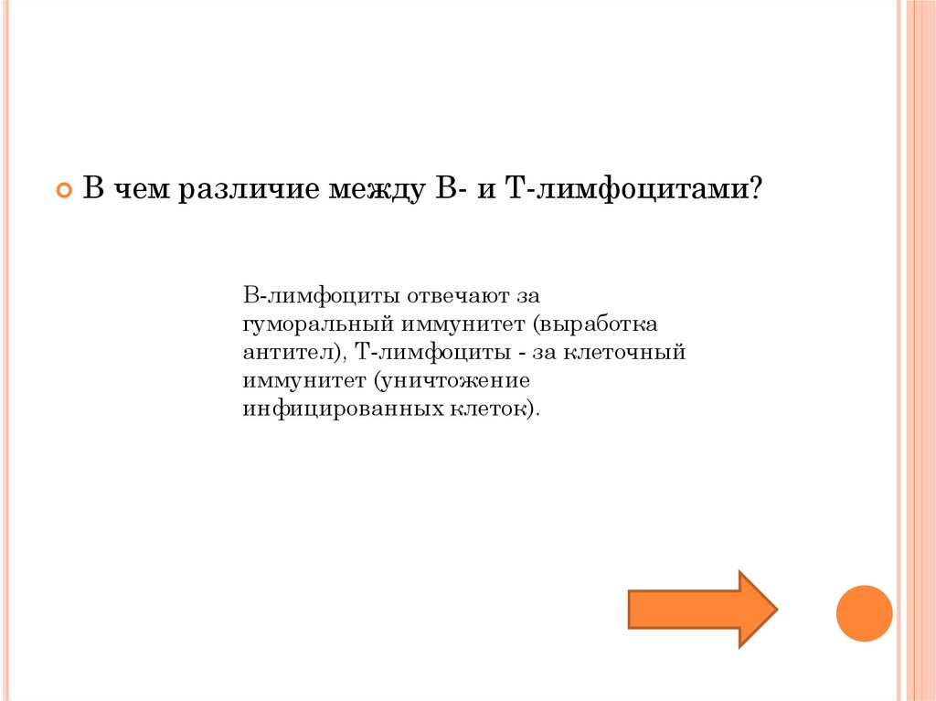 В чем различие между В- и Т-лимфоцитами?В-лимфоциты отвечают за