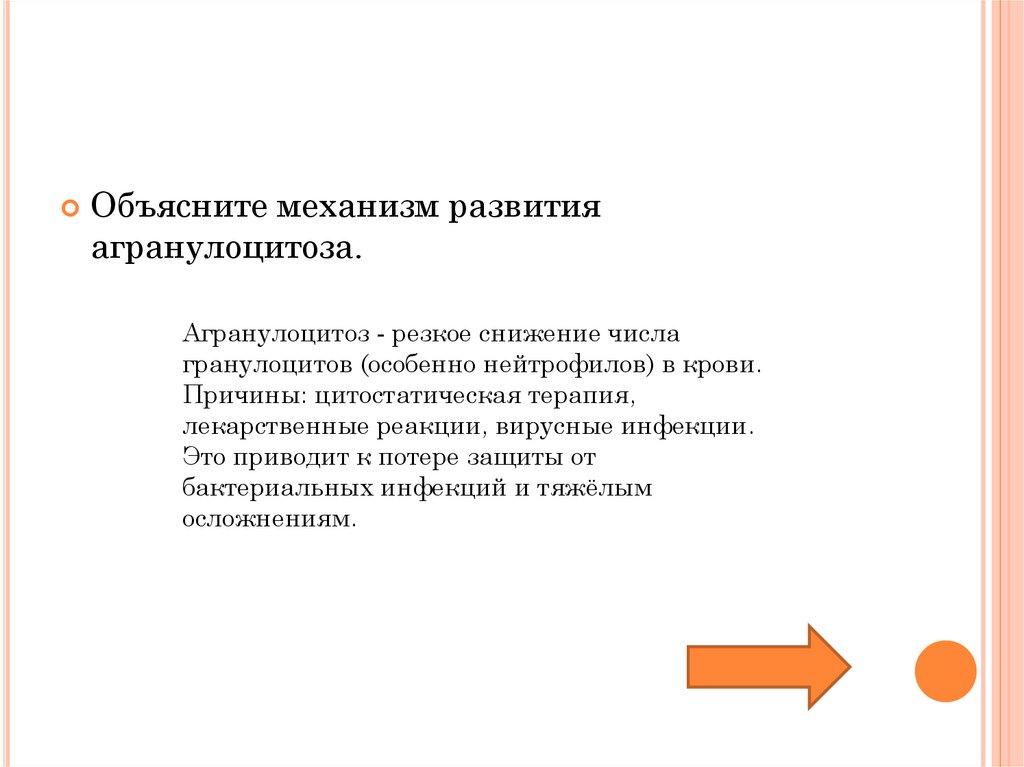 Объясните механизм развитияагранулоцитоза.