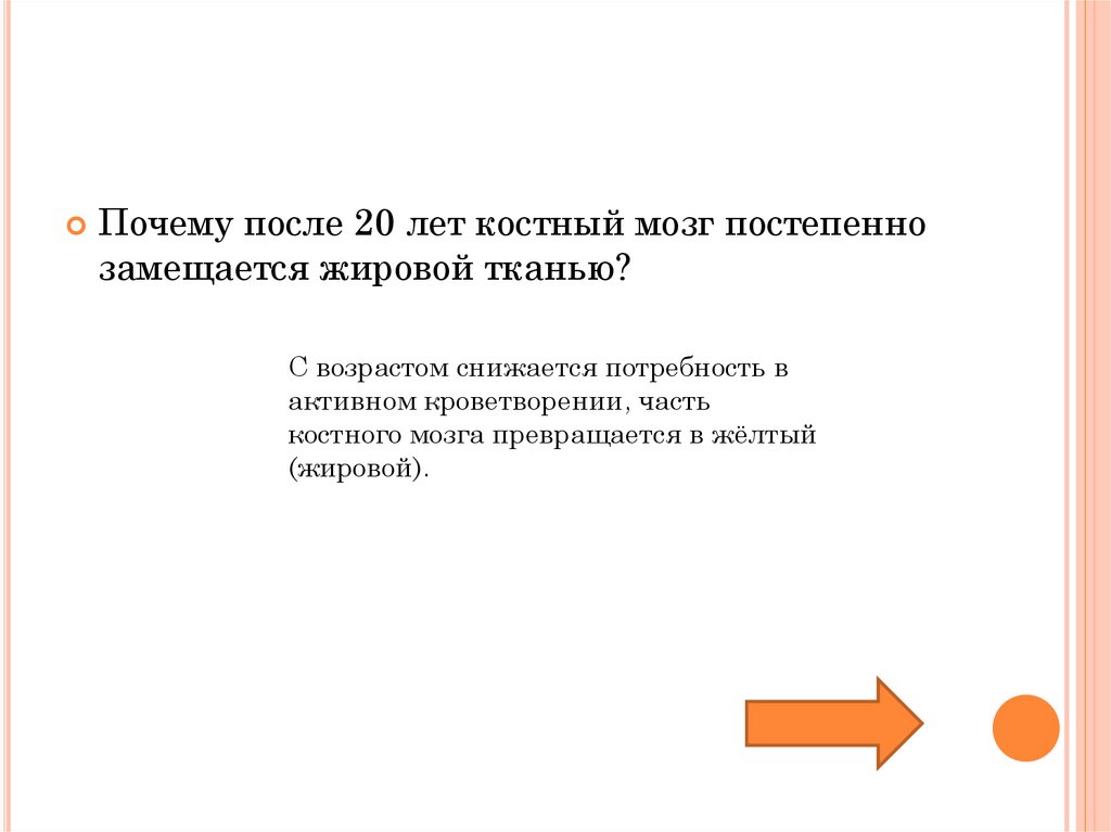 Почему после 20 лет костный мозг постепеннозамещается жировой тканью?