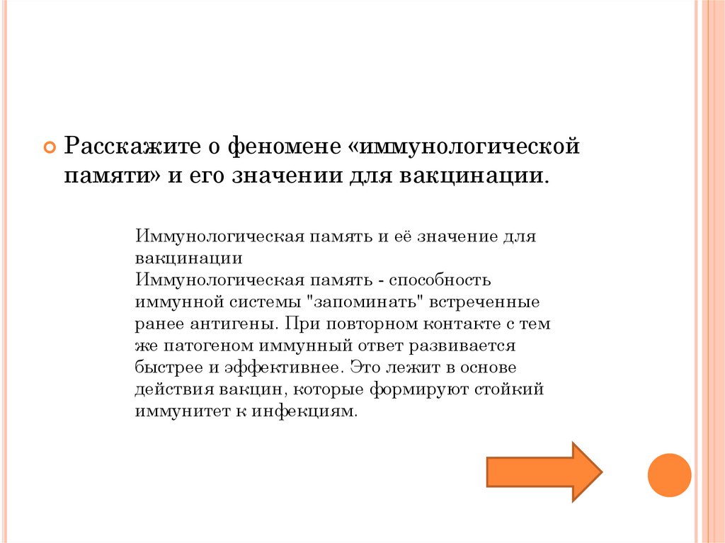 Расскажите о феномене «иммунологическойпамяти» и его значении для вакцинации.