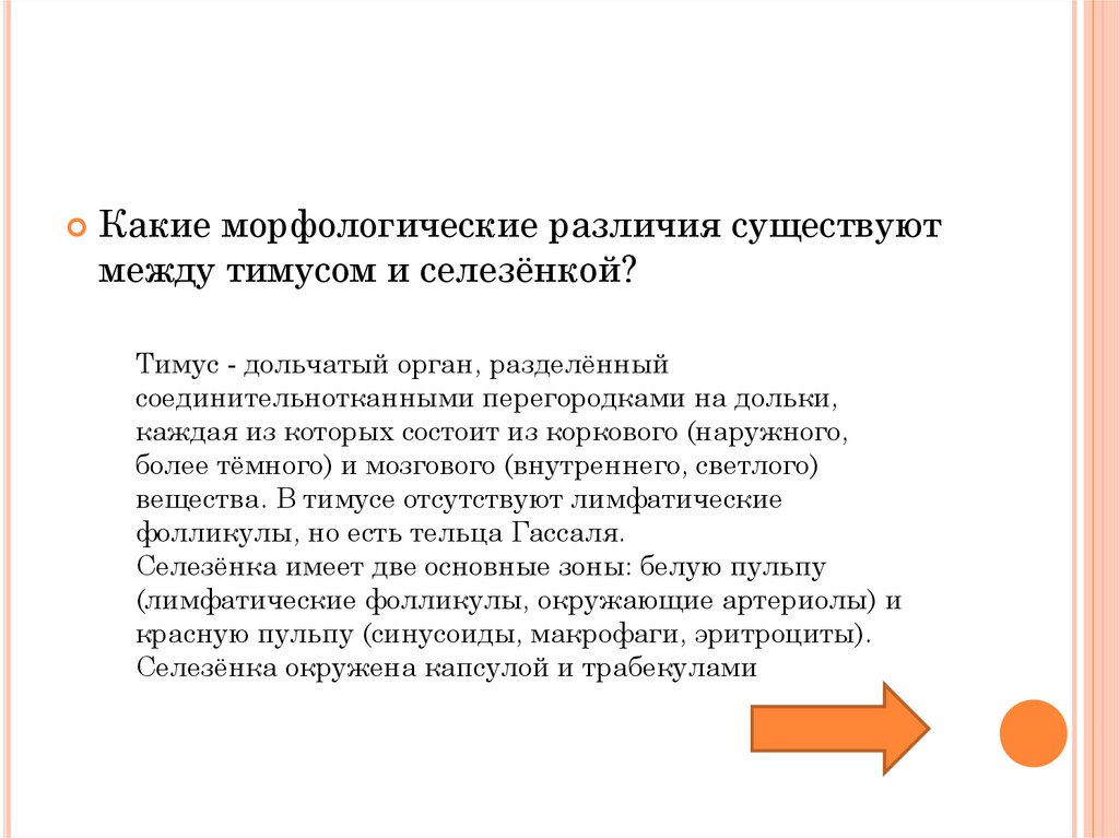 Какие морфологические различия существуютмежду тимусом и селезёнкой?