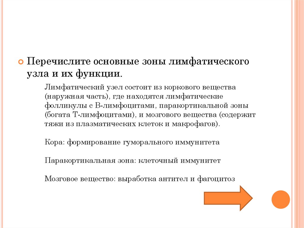 Перечислите основные зоны лимфатическогоузла и их функции.