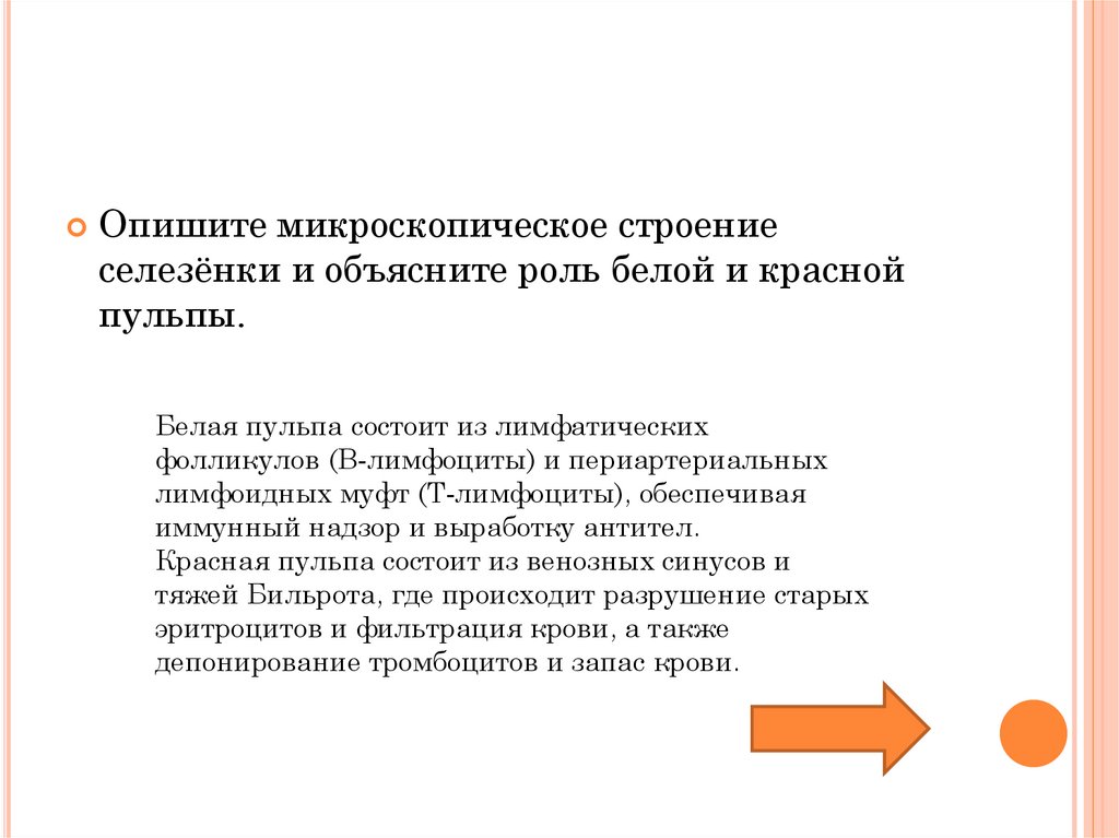 Опишите микроскопическое строениеселезёнки и объясните роль белой и красной