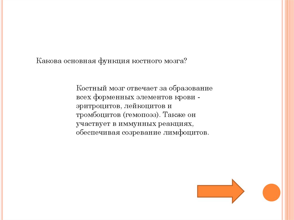 Какова основная функция костного мозга?Костный мозг отвечает за образование