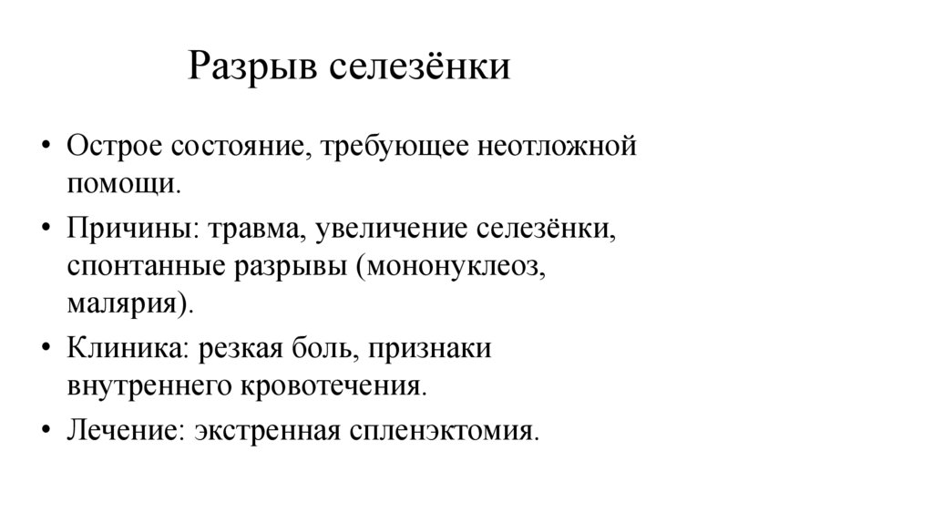 Разрыв селезёнки• Острое состояние, требующее неотложной