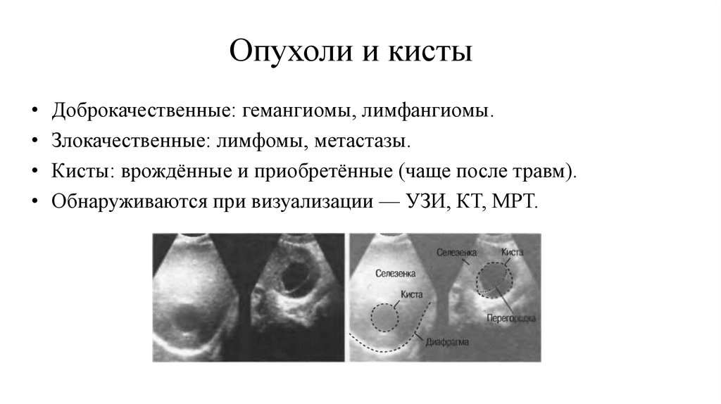 • Обнаруживаются при визуализации — УЗИ, КТ, МРТ.