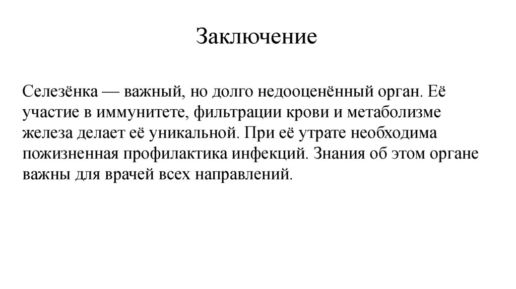 ЗаключениеСелезёнка — важный, но долго недооценённый орган. Её