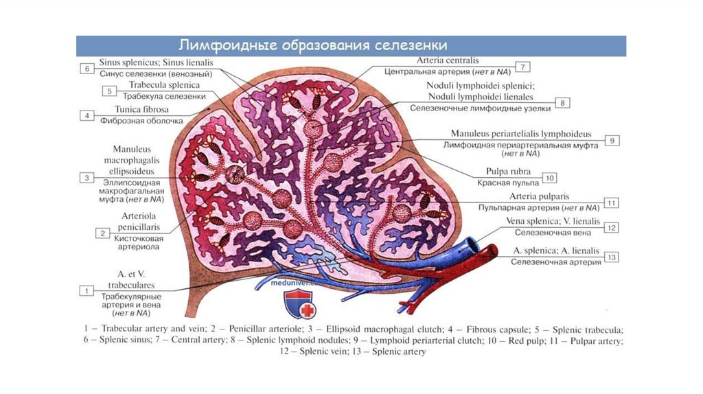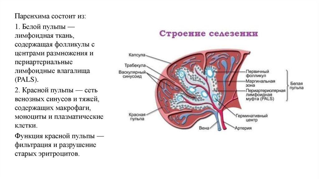 Селезёнка — крупнейшийорган лимфоидной системы.