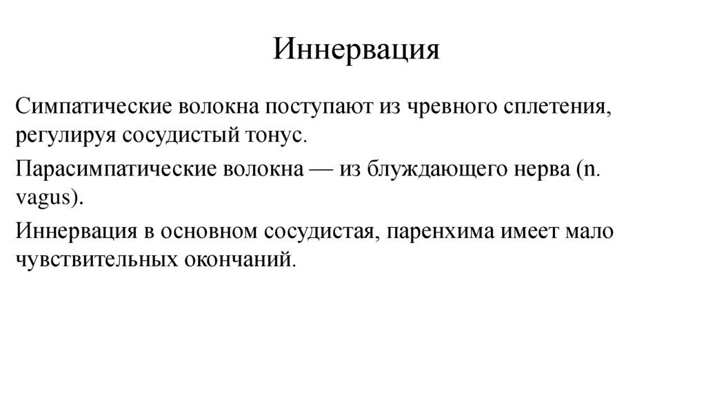 ИннервацияСимпатические волокна поступают из чревного сплетения,