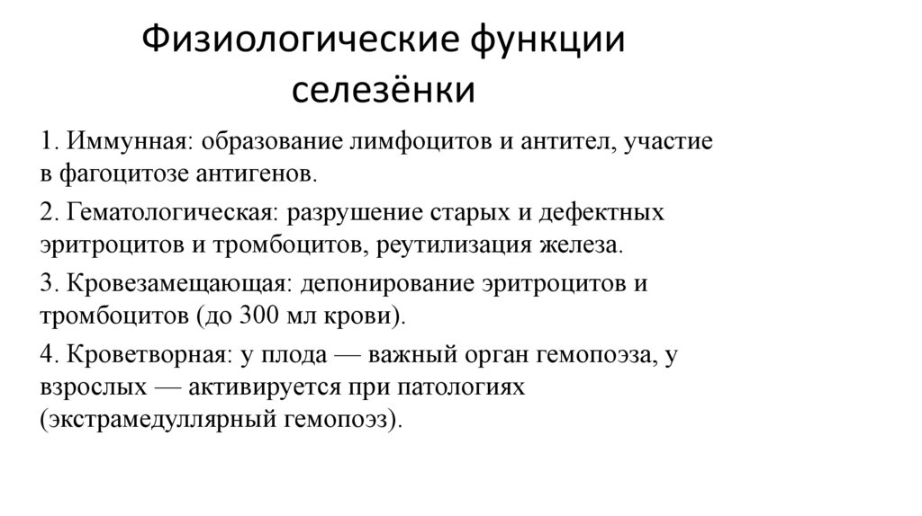 4. Кроветворная: у плода — важный орган гемопоэза, у