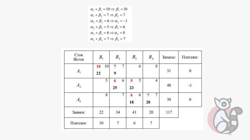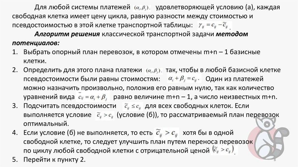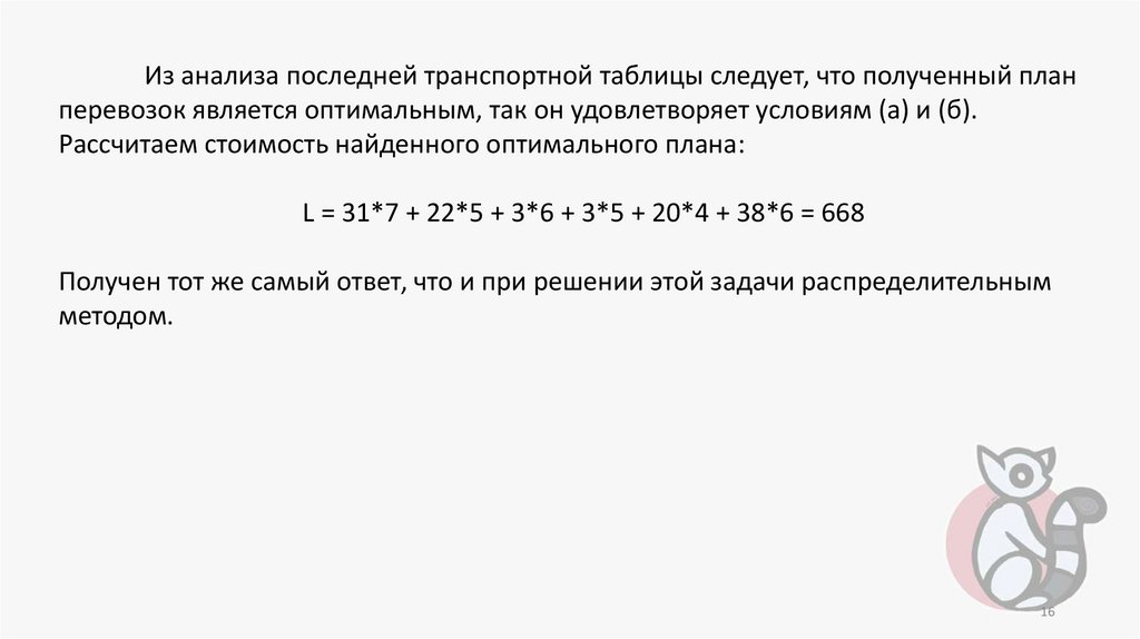 а для всех свободных клеток псевдостоимость не превышает стоимости перевозки,