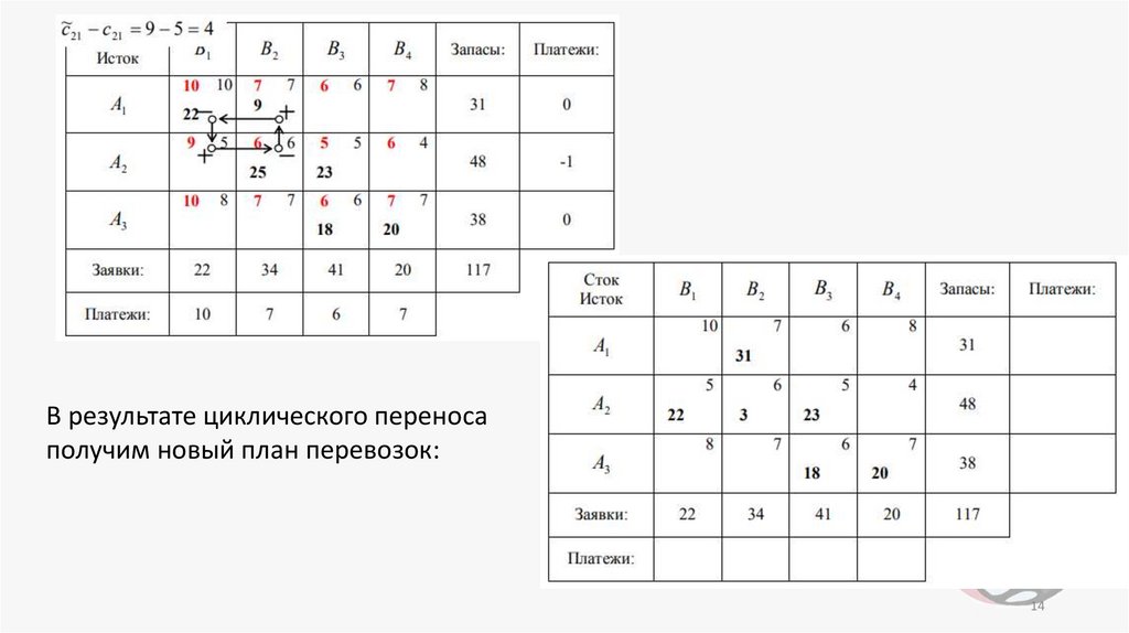 свободной клетке, то следует улучшить план путем переноса перевозок