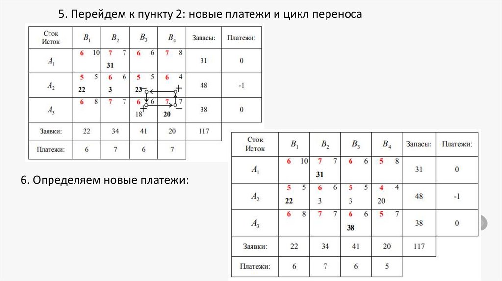 4. В соответствии с алгоритмом улучшим найденный план путем переноса