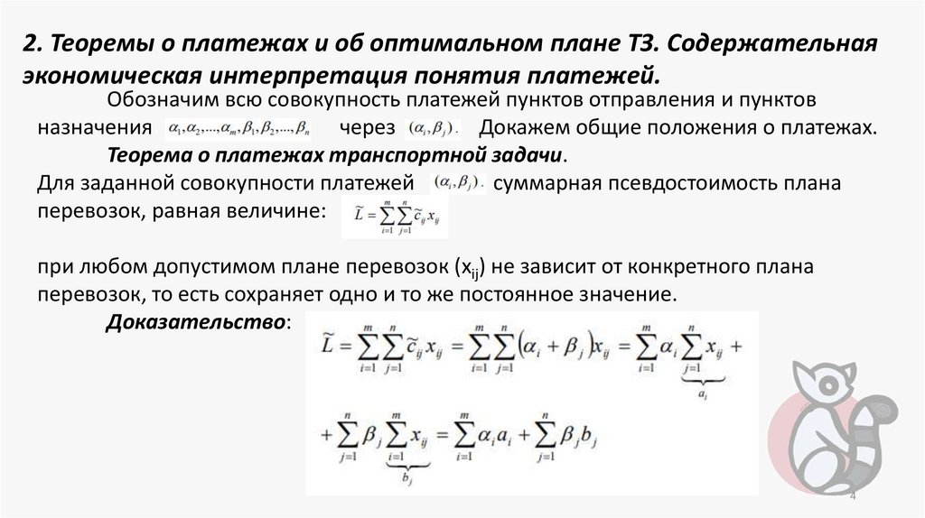 2. Теоремы о платежах и об оптимальном плане ТЗ. Содержательнаяэкономическая интерпретация понятия платежей.