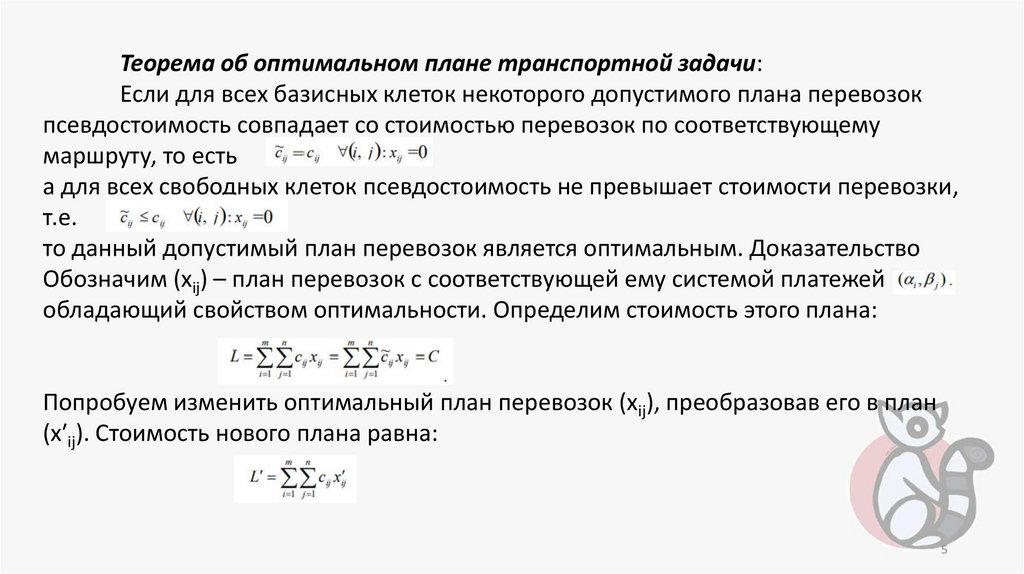 2. Теоремы о платежах и об оптимальном плане ТЗ.