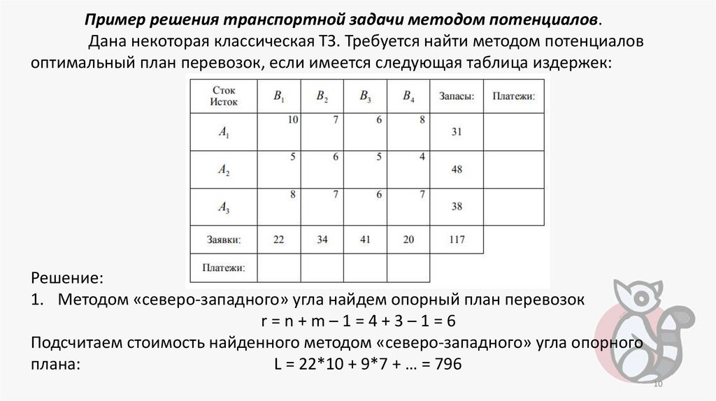 потенциалов. Пусть задана некоторая классическая транспортная задача: