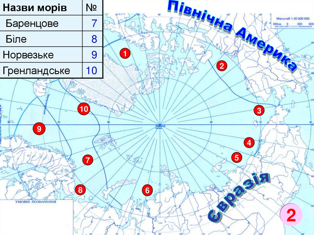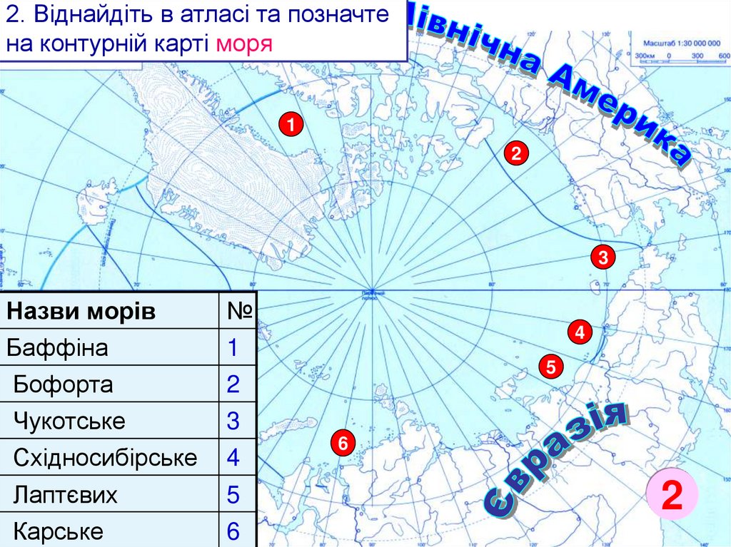 2. Віднайдіть в атласі та позначтена контурній карті моря