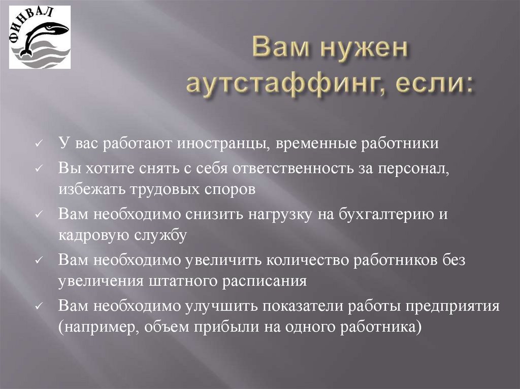 Для ПАО «ЛУКОЙЛ»2. Вам нужен аутстаффинг, если: