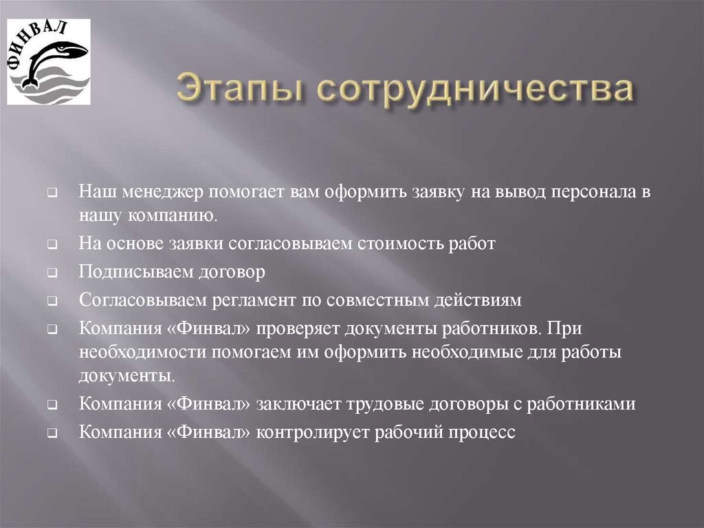 6. Этапы сотрудничества