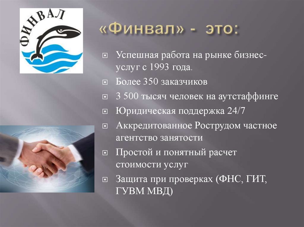 Успешная работа на рынке бизнесуслуг с 1993 года.Более 350 заказчиков