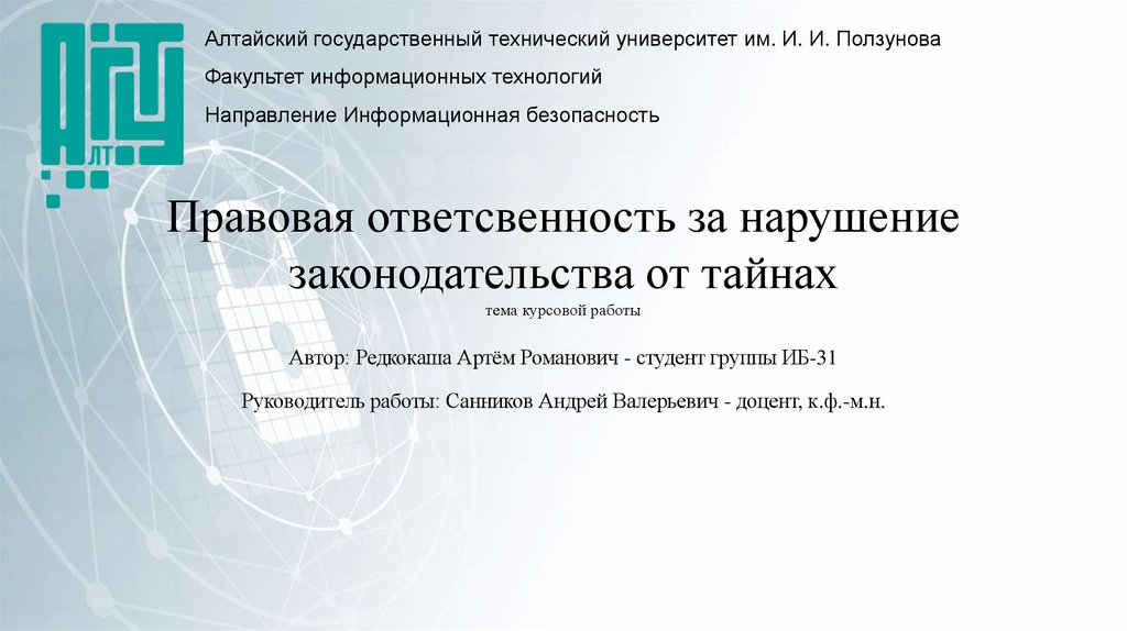 Алтайский государственный технический университет им. И. И. ПолзуноваФакультет информационных технологий
