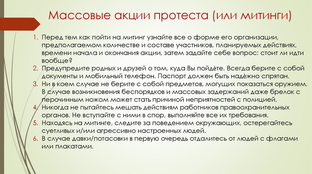 Массовые акции протеста (или митинги)1. Перед тем как пойти на митинг узнайте все о форме его организации,