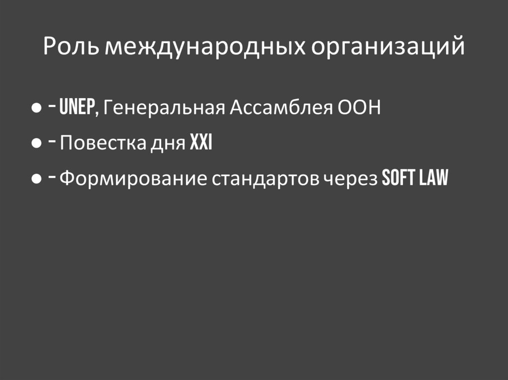 Роль международных организаций● – UNEP, Генеральная Ассамблея ООН