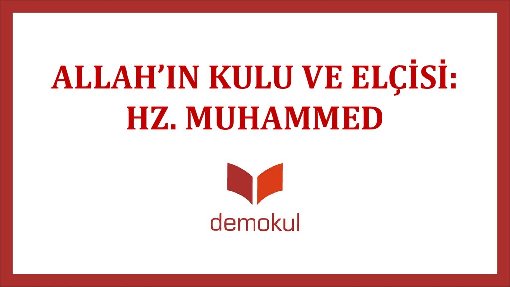 ALLAH’IN KULU VE ELÇİSİ:HZ. MUHAMMED