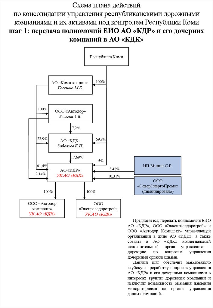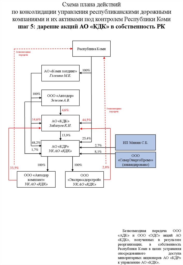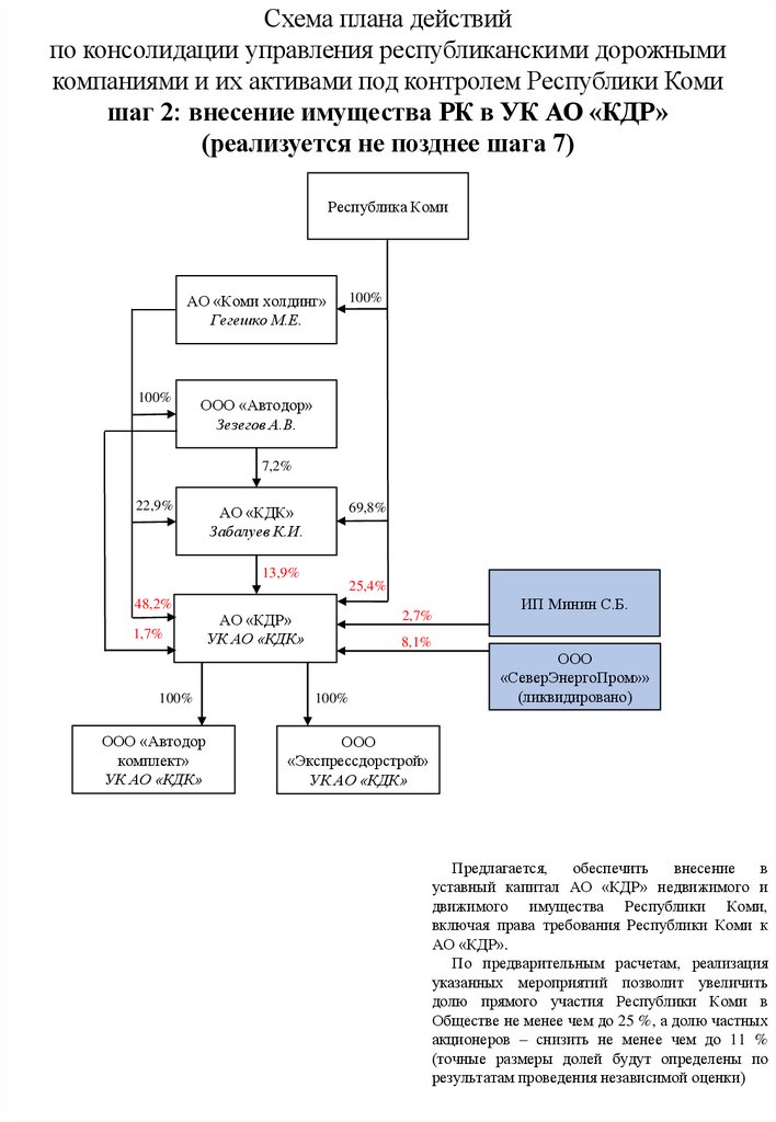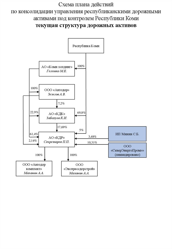 Схема плана действий по консолидации управления республиканскими дорожными активами под контролем Республики Коми