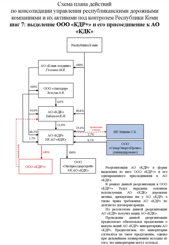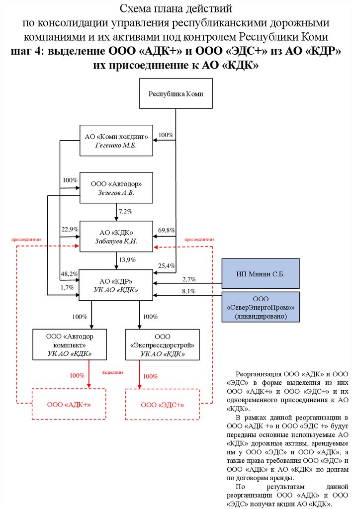 шаг 7: выделение ООО «КДР+» и его присоединение к АО