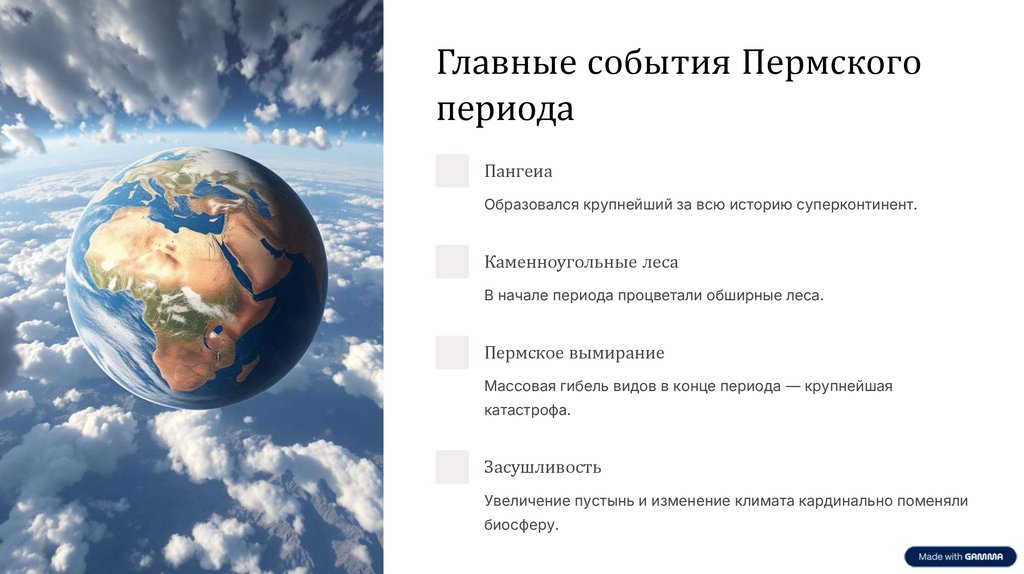 Пермский период длился от 298,9 до 251,9 млн лет назад.