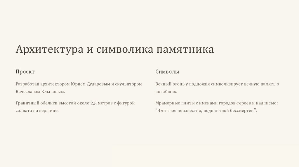 Архитектура и символика памятникаПроект