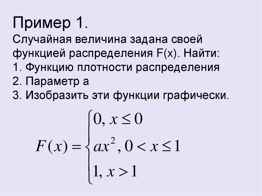 11. Пример 1. Случайная величина задана своей функцией распределения F(x). Найти: 1. Функцию плотности распределения 2. Параметр а