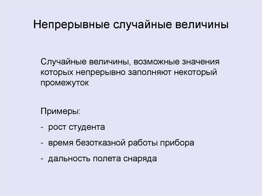 Случайные величины, возможные значениякоторых непрерывно заполняют некоторый