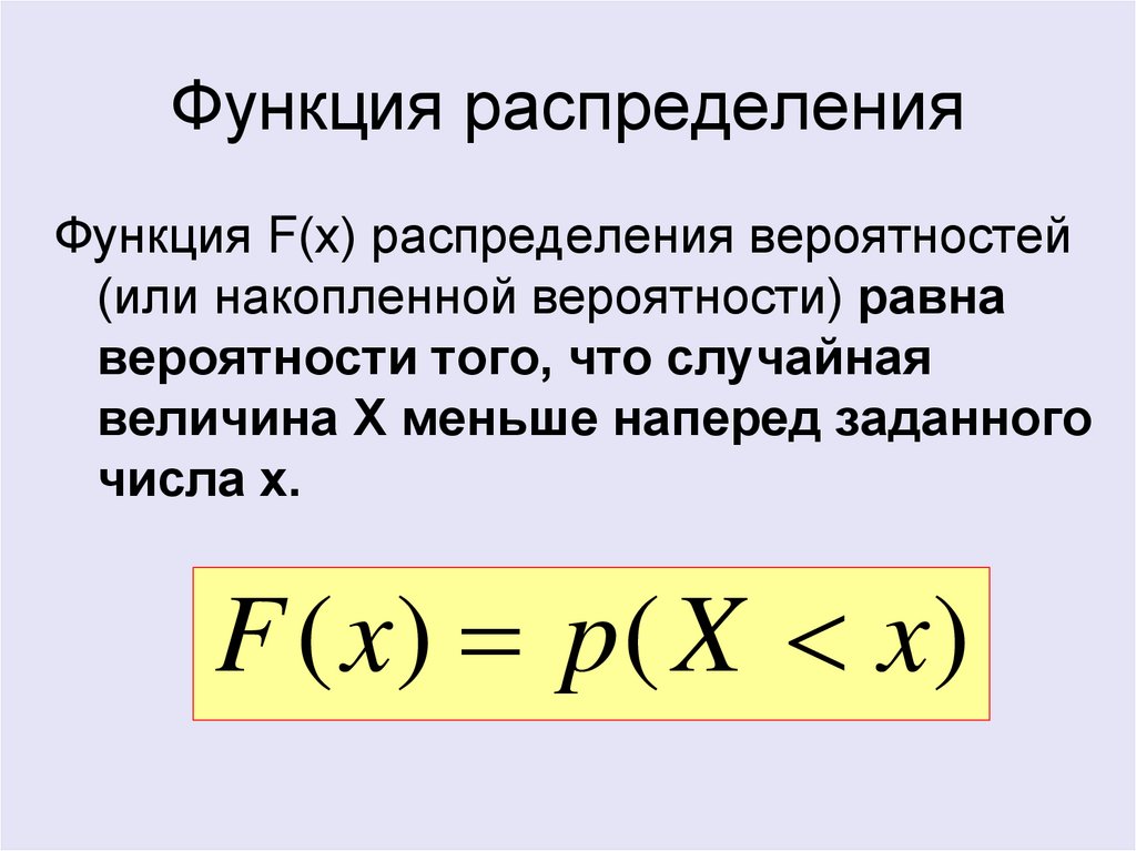 Функция F(х) распределения вероятностей(или накопленной вероятности) равна