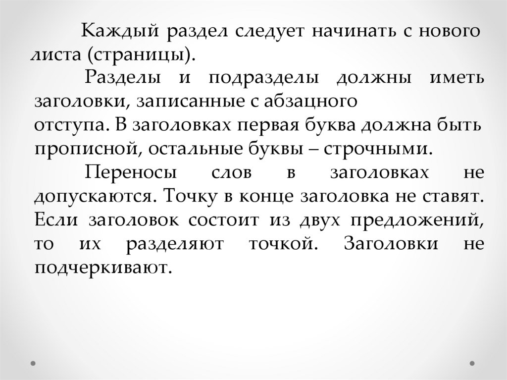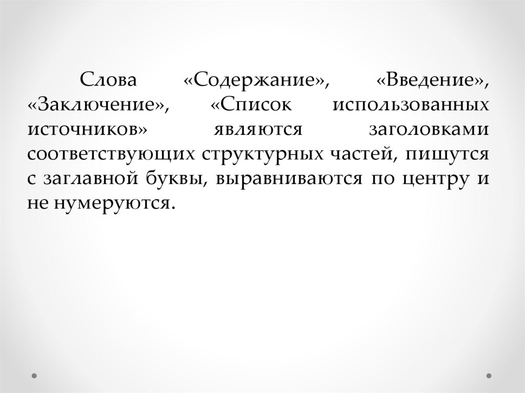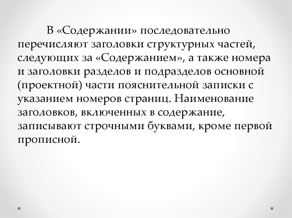 В «Содержании» последовательноперечисляют заголовки структурных частей,