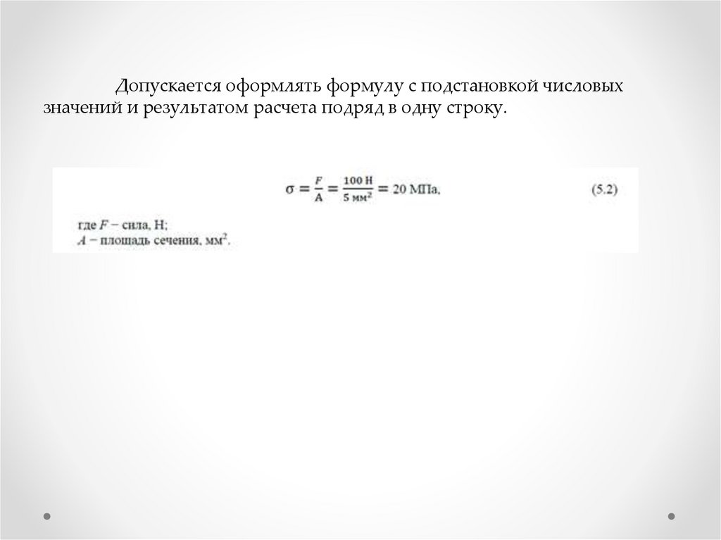 Допускается оформлять формулу с подстановкой числовыхзначений и результатом расчета подряд в одну строку.