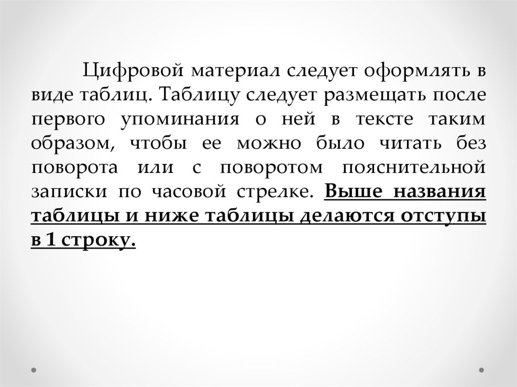 Цифровой материал следует оформлять ввиде таблиц. Таблицу следует размещать после