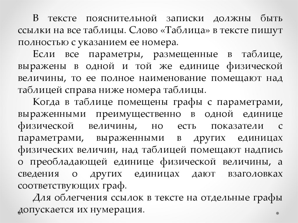 В тексте пояснительной записки должны бытьссылки на все таблицы. Слово «Таблица» в тексте пишут