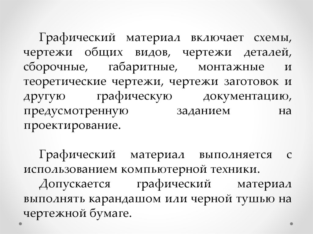 Графический материал включает схемы,чертежи общих видов, чертежи деталей,