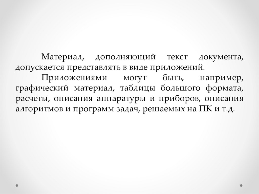 Материал, дополняющий текст документа,допускается представлять в виде приложений.