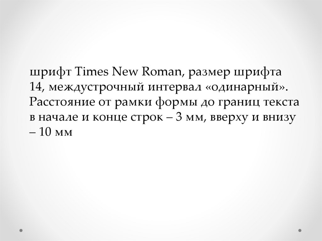 шрифт Times New Roman, размер шрифта14, междустрочный интервал «одинарный».