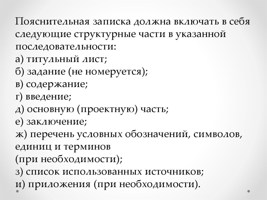 Пояснительная записка должна включать в себяследующие структурные части в указанной