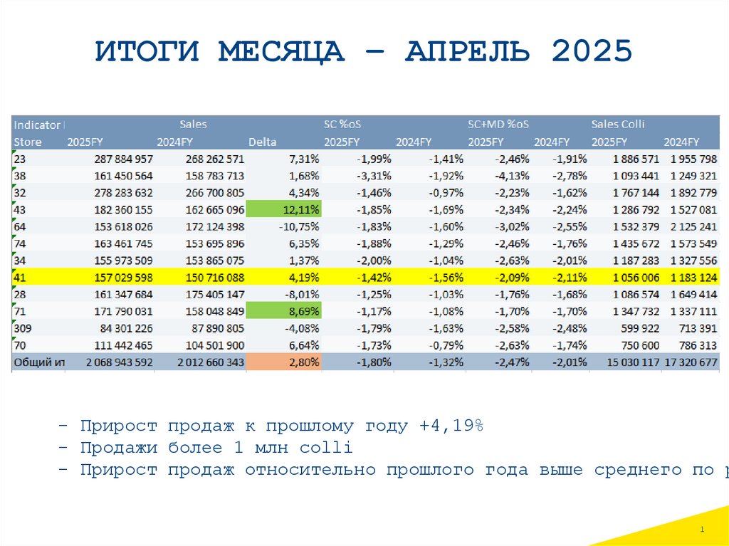 ИТОГИ МЕСЯЦА – АПРЕЛЬ 2025- Прирост продаж к прошлому году +4,19%