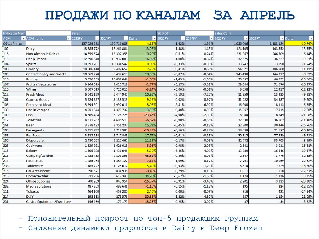 ПРОДАЖИ ПО КАНАЛАМ ЗА АПРЕЛЬ- Положительный прирост по топ-5 продающим группам